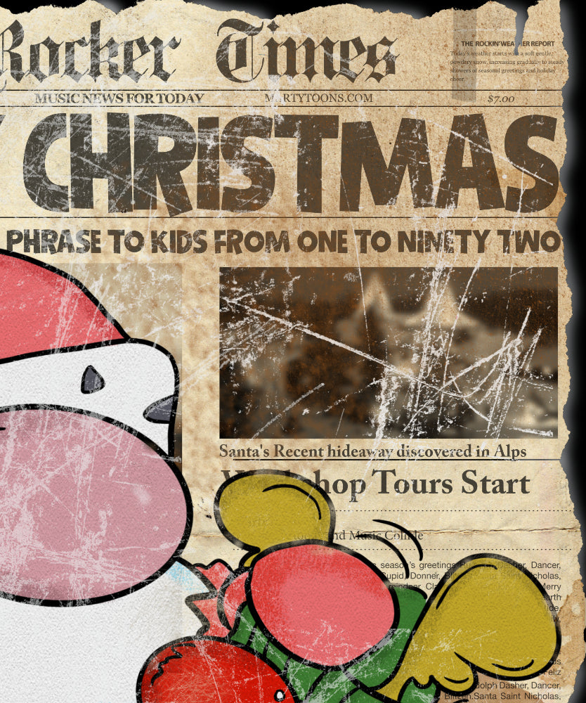 Christmas Artwork 16"x 20" Original Lil Santa Cartoon Print