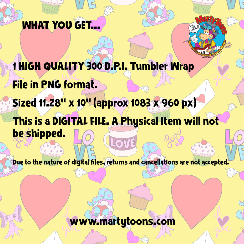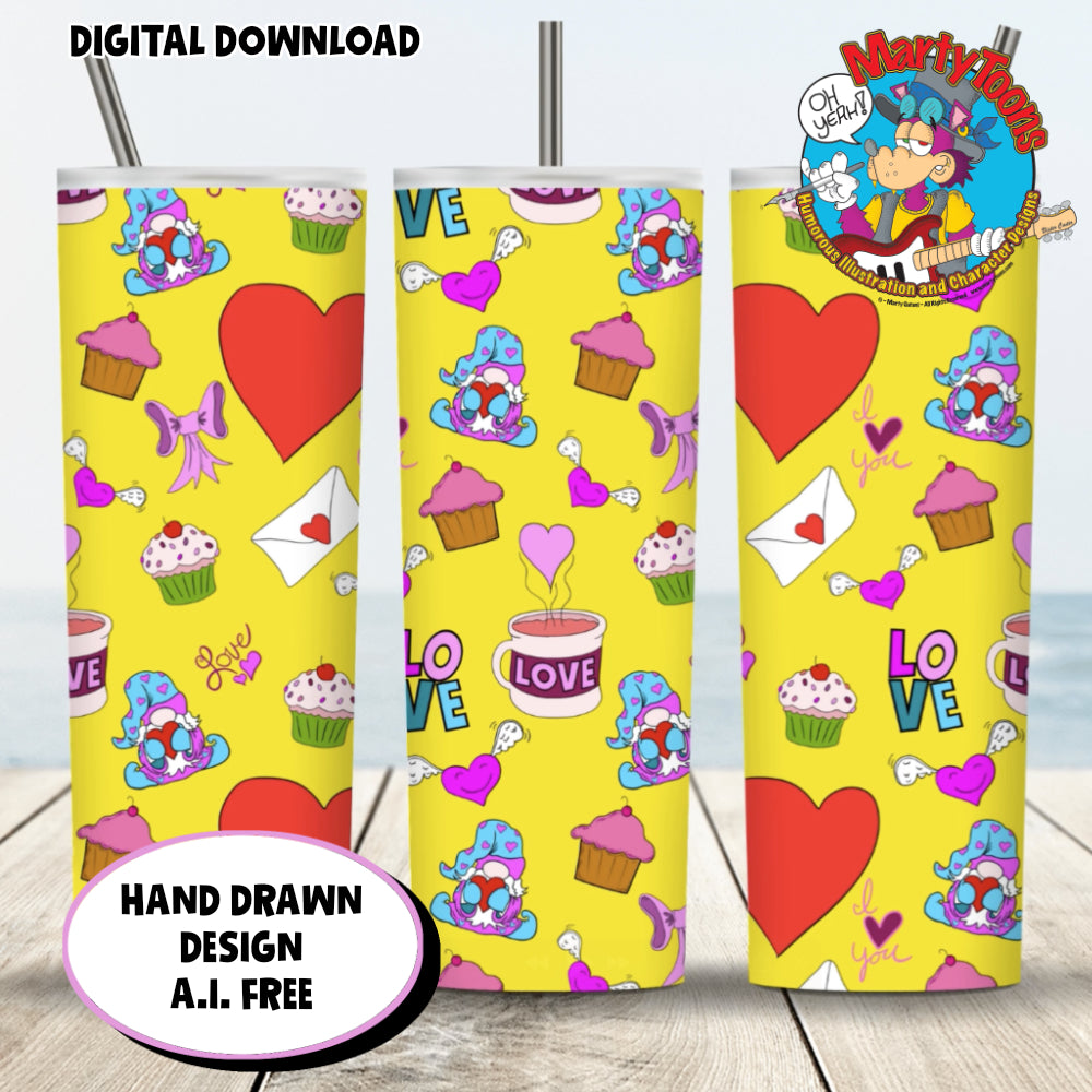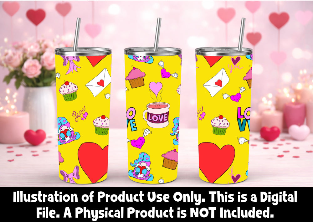 Title: Valentine Yellow Tumbler Wrap with cute cartoon Valentine Designs, Skinny Valentine Tumbler Sublimation Designs, Valentines day Tumbler PNG, Instant Digital Download