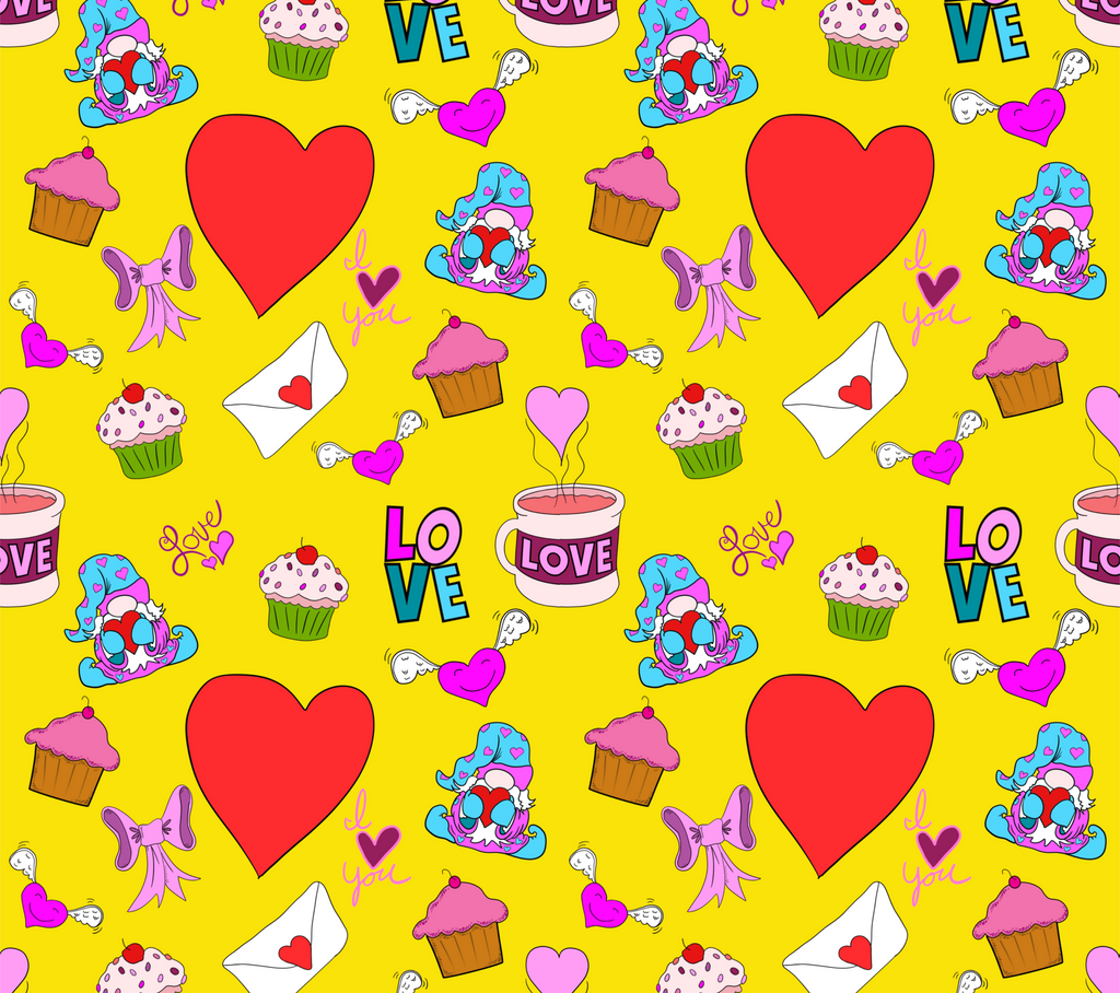 Valentine Seamless Tumbler Wrap, Cute Hand drawn Valentine Design.